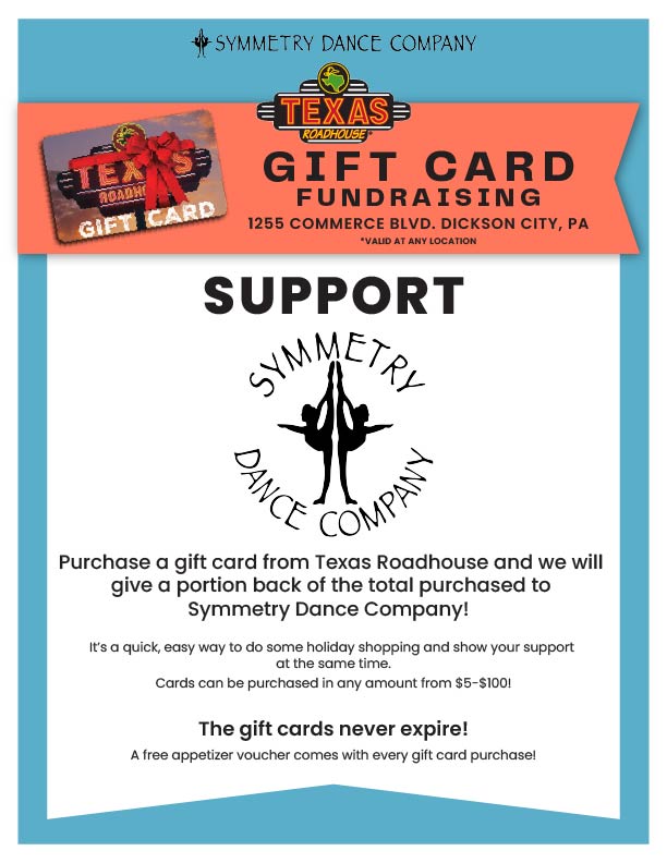 At Symmetry Dance Company, our fundraisers help support both your dancer and our growing studio community. Every purchase you make counts towards your dancer’s individual fundraising total, which directly offsets your child’s costume balance and determines your spot in line for purchasing tickets to each of our performances.